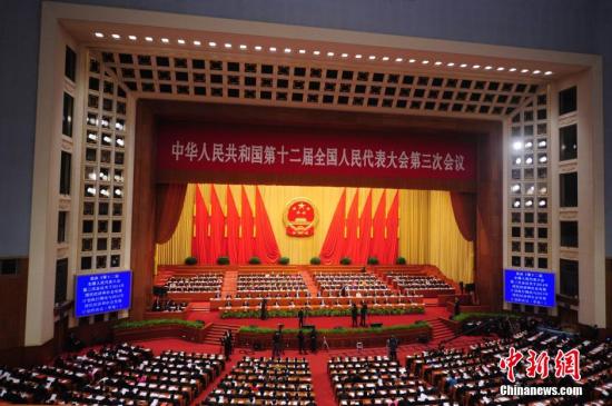 3月15日,十二届全国人大三次会议在北京人民大会堂举行闭幕会。中新社发 陈文 摄
