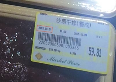 3月15日前夕,京华时报记者进入北京华联小黄庄BHG精品超市(MarketPlace)鲜肉、冷冻肉品大区的肉类及海鲜分区(以下简称“华联小黄庄超市肉类海鲜区”)进行5天暗访,发现该区员工不仅每天翻新前一天未售出的由超市包装的托盘肉类或海鲜的标签,甚至有员工将已过期25天由厂家密封包装的肉品翻新。翻新肉品标签的包装日期变成了当日,标签上的保质期向后顺延。主管还要求员工将“差肉”标签换成其它低价品牌的标签进行销售。