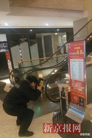 一名参与追赶蒙面男的店内工作人员告诉新京报记者,大约追出一百米后,该蒙面男子在银泰附近掏出手枪向他们开了两枪。此后,该男子抢劫了一辆金杯面包车,但由于他不会开车,于是又劫持了一辆出租车,并轰下了车内乘客,坐上副驾驶座,用枪控制司机逃离现场。图为事发表店。