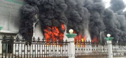 江西上饶晶科能源发生火灾 现场浓烟滚滚 组图