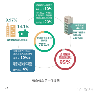 去年全年,政府工作在很多方面都收到了实效。别的且不提,单说咱们老百姓最关心的民生领域吧。2014年,政府财政用于民生的比例达到 70%以上,织密织牢民生保障网。