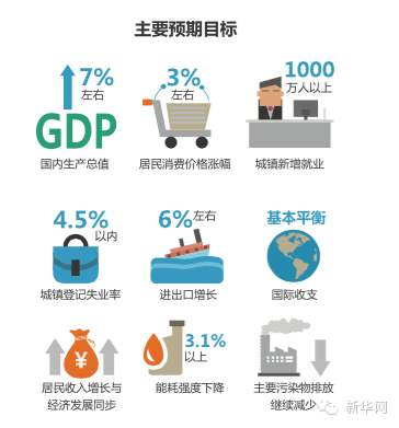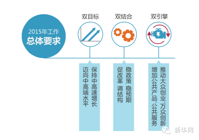 2015年,中国将进入经济发展新常态,政府工作的总体要求为双目标、双结合、双引擎,主要预期目标也通过数据一一列出。