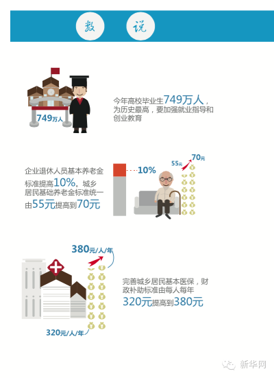 李克强在政府工作报告中表示,立国之道,惟在富民。2015年中国政府持续推进民生改善和社会建设。本书提供了“数说新民生”一图,今年咱们老百姓将得到什么优惠?看这张图,一目了然。