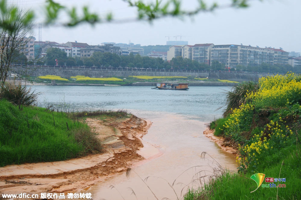 2015年3月19日,湖南省石门县中美矽砂矿业的污水如滚滚“黄河”水直接流入澧水河。洗矿污水如滚滚“黄河”水直接流入澧水河。(供图:李根/东方IC)