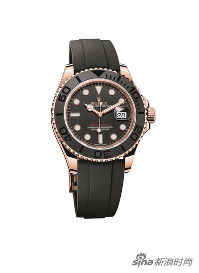 劳力士推出经典航海腕表蚝式恒动游艇名仕型全新18 ct永恒玫瑰金黑色表款,特别配备由劳力士研发的专利Oysterflex表带。此创新设计将金属表带的坚固可靠,以及橡胶表带的灵活丶舒适及美感集於一身。表带的精妙之处,在於内里是超弹力金属片,而外层则以高性能黑色橡胶注塑包覆。