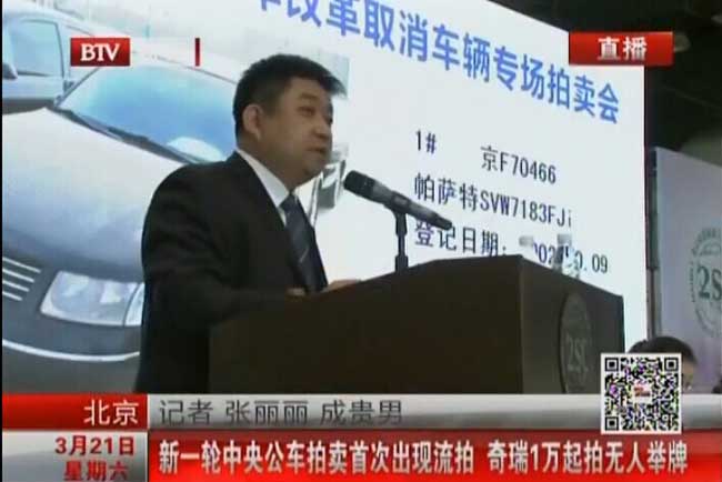 对于流拍的奇瑞轿车,本场拍卖师王郁峰认为,该车型平时在二手车市场不属于热销车型,因此流拍也是难以避免。据了解,下一场中央和国家机关公车拍卖会为3月28日的亚市专场。