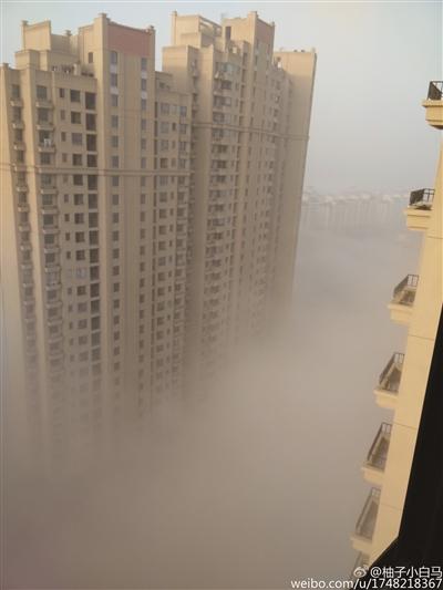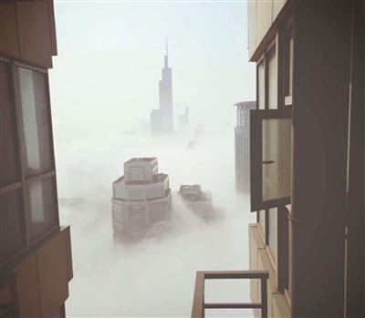 从前天夜间开始,雾气就悄悄潜入南京城。昨天清晨7点左右,一些早起的朋友推开窗,被眼前的一幕吓了一跳,外面白茫茫一片,如仙境一般,连对面的楼房都“消失”了。在一些楼层高的地区,外面几乎什么都看不见,能见度不到10米。