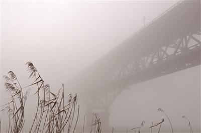 长江大桥隐在雾中。IC供图