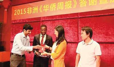 近日,非洲《华侨周报》赞比亚分社在卢萨卡举办2015非洲《华侨周报》答谢会。中国驻赞比亚大使杨优明及夫人、中国驻赞比亚使馆政务参赞潘庆江和读者代表、客户代表等近百人参加。