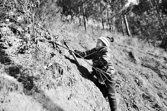 小滢放学第一件事,总是去山上砍柴。陕西妇女儿童发展基金会/供图