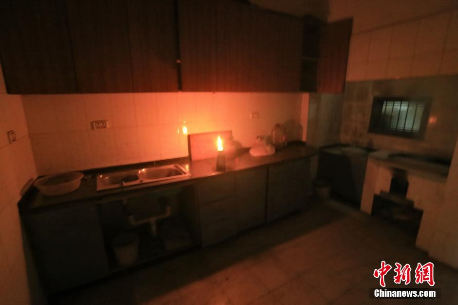 图为房屋内景,因为断电,只能点起了蜡烛。 图片来源:东方IC 版权作品 请勿转载