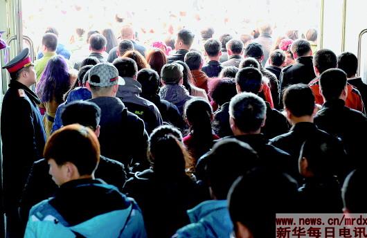 3月20日,在哈尔滨火车站,未经出站验票的旅客通过出站口的应急门出站。