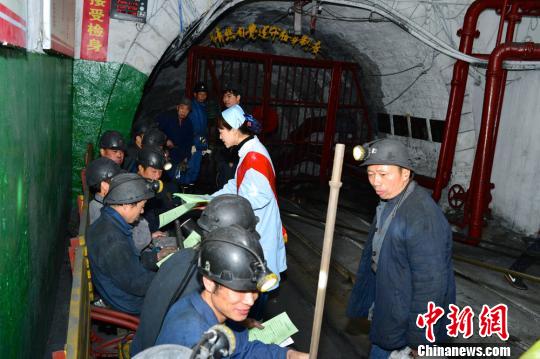 因要接受媒体的采访,龙有康特意穿了西装和皮鞋,“下井的时候要穿工作服,也要戴口罩,就像他们一样。”龙有康指着工友——一旁刚从井下出来的工友工作服上和头发上蒙着一层灰,脸上有几道黑黑的煤灰印子。