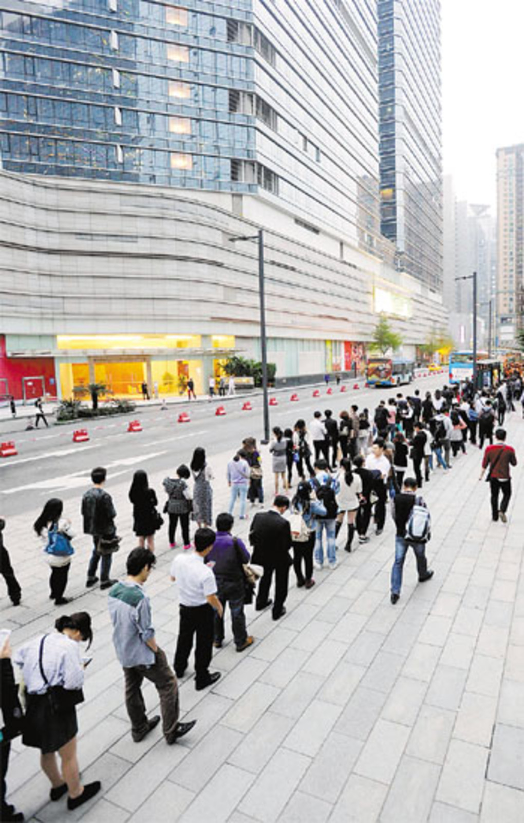 市民廖女士说:“以前乘车时怕挤,我都是尽量站在后面,等到别人都上去了我再上,有时挤不上也很着急。现在看到大家有序地排队,我也选择了遵守这种来之不易的秩序,对‘挤公交’say no。”图为创汇街,市民排队乘坐公交车。 (来源:广州日报)