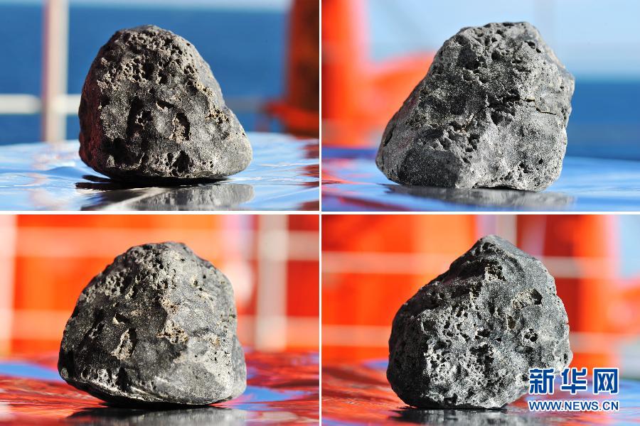 图为从不同角度拍摄的灶神星陨石(2014年3月20日摄)。除月岩外,陨石是人类获得的唯一地球外岩石样品,堪称“天外珍宝”。在中国第30次南极科学考察中,我国科考队员在南极发现一块1300克的陨石,经科学检测为珍贵的灶神星陨石。据桂林理工大学地球科学学院副院长缪秉魁教授近日在上海市曹杨中学做科普报告时介绍,在中国第30次南极科学考察中,科考队员在南极格罗夫山地区发现583块陨石。经过近一年努力,桂林理工大学对其中149块样品进行了分类研究和命名。其中,最大一块陨石达1300克,经检测为灶神星陨石,已按照国际惯例将其编号为GRV13001。新华社记者 张建松 摄