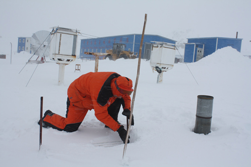 2013年12月,李静锋作为中国第30次南极科考越冬队员,也是广西区气象局赴南极第一人,奔赴南极长城站进行为期一年的科考工作。一年的时间里,超过半年的时间是处于八级以上的暴风雪肆虐的日子,既经受着极昼极夜对身心的考验,也在隔绝的环境中煎熬着意志和毅力。李静锋凭借着对祖国极地事业的热爱和奉献精神,克服重重困难,出色完成祖国交给的科考任务。每天定点外出观测,当暴风雪来临,队友们都在宿舍躲避风雪时,李静锋仍要第一时间赶到观测场进行气象观测,观测后要在正点后10分钟内将数据传输到世界气象组织。在一年多的观测日子里,多次遇到暴风雪的袭击。在一次极夜的观测中,暴风雪达到了十一级,在返回值班室六七十米的途中,李静锋在伸手不见五指的黑暗中迷了路,依靠自身的敏锐终于在规定的时间内安全回到值班室并将报文发送成功。一次风传感器被冻结,在漆黑的夜里,李静锋冒着寒风爬上10多米高的风杆,将结冰清除,确保了数据的正常采集。在一个零下10℃的日子,日照传感器出故障,这样的故障在国内四十多分钟就能修复,在极地这样恶劣的环境中,外出需要带厚厚的工作手套,但修仪器这样的细活又不能带手套,到仪器修复整整花了两个多小时,李静锋已被冻得浑身发麻。这样的工作画面仅仅是李静锋在极地工作的一瞥。正是凭借着过人的毅力,李静锋独自挑起国内需要六个人才能完成的业务工作,共完成人工定时气象观测一千多次,编制发送气象天气报告一千多份,完成四百多张自记纸的整理装订工作,审核气象观测数据小时数据近七万个,分钟数据二百多万个。在归国的一次总结会上,第30次长城站站长对李静锋作了这样的评价:小伙子很出色,不但出色完成了自己的科考工作,而且总是主动帮助其他科考工作人员,无怨无悔!!