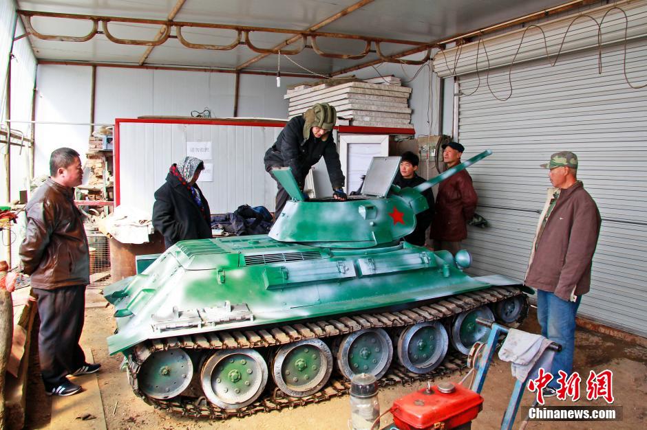 据了解,邹炳钰父子受深圳微缩公园的启发,仅靠角磨机、钻床、电焊机和手电钻便完成了这辆威武的坦克。中新社发 孙昊声 摄