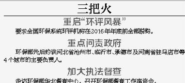 3月20日,陈吉宁曾召开环保部督查工作座谈会,指出区域督查是环境保护的重点之一,是守好底线的重要保障。他强调说,“2015年是新《环境保护法》的实施年,新法能不能装上‘钢牙利齿’,关键在于执法督查工作是不是严格到位。”