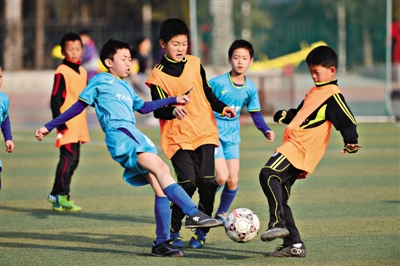 3月26日,清华附小,校足球队在进行比赛。清华附小与阿根廷足协商业代理公司签合作协议,每年将派学生赴阿根廷接受集训。新京报记者 浦峰 摄