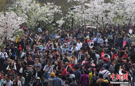 南京鸡鸣古刹樱花盛开 “赏樱大军”挤爆整条道
