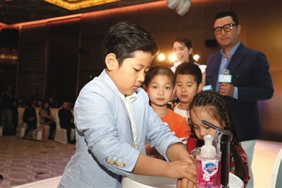 启动仪式现场,著名演员、舒肤佳洗手健康公益推广大使郭涛、郭子睿(石头)父子亲临助阵,郭涛与来宾分享了如何更好地督促孩子养成积极主动洗手习惯这一父母常遇到的教育困扰。与此同时,宝洁舒肤佳研发部的专家也分享了儿童洗手教育心得,指导儿童健康趣洗手,远离致病细菌。