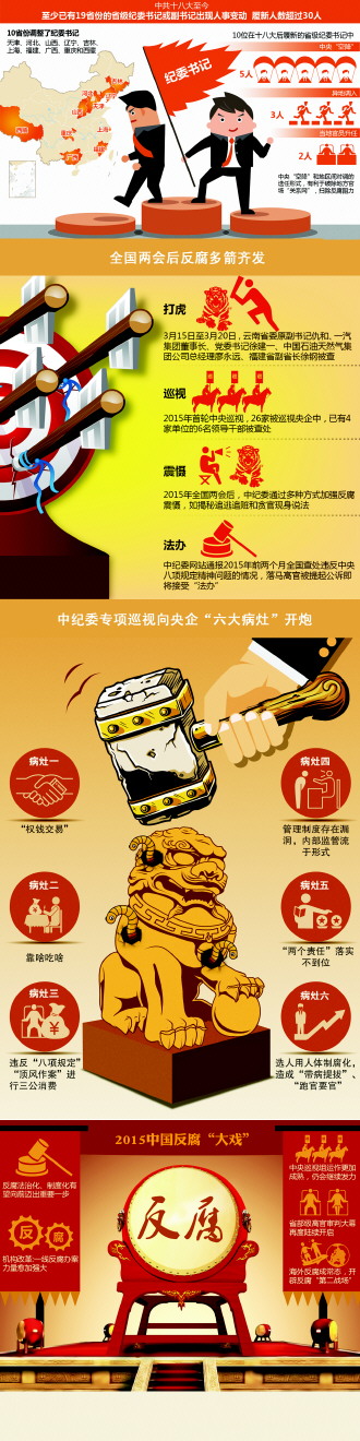 十八大以来的反腐“大戏”中,党、政、军均有高级干部折戟,“猛药去疴”的反腐战术和速度超出以往想象。与之相应,挖掘出的“冰山一角”腐败现实也大为升级,高级官员家族式、规模化腐败令人震惊,一些地方、领域的塌方式腐败,官员和官商重陷团团伙伙、拉帮结派式的封建陋习等,对中国社会和经济造成的损毁难以估量。
