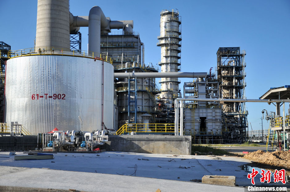 4月6日,有网友在微博爆料,称福建漳州古雷PX工厂傍晚时分发生爆炸,现场火光冲天。东南早报官方微博随后引述附近村民言论称,爆炸地点附近的房屋的屋顶都被震塌下来,大火还在持续。暂无人员伤亡报告。图为2013年7月30日凌晨4时35分,该项目曾发生闪燃事故,未造成人员伤亡和重大损伤,无物料泄漏。官方通报称,事故造成附近一个村庄部分房屋玻璃震裂或破损。图为爆炸的设备。
