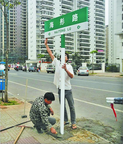2012年底,海南省政府制定了《海南省地名标志设置工作方案》,提出2013年到2015年,按照“试点先行、经验推广,先城镇、后乡村”的原则,有计划、分步骤地完成海南省城乡地名标志设置工作,形成全省标准统一、设置合理,功能完善的地名标志体系。列入试点的海口和三亚,2013年底都已全面完成地名标志规范设置试点工作,共投入416万元,设置了街(路、巷)牌664块、楼(门)牌43630块。“地名、路牌、门牌规范了、清晰了,广受市民和游客欢迎,特别是三亚新置的箱体式路牌集路名标识、方位指向、局部地图、周边场所指向及距离等多功能于一体,非常实用。”张建明介绍。