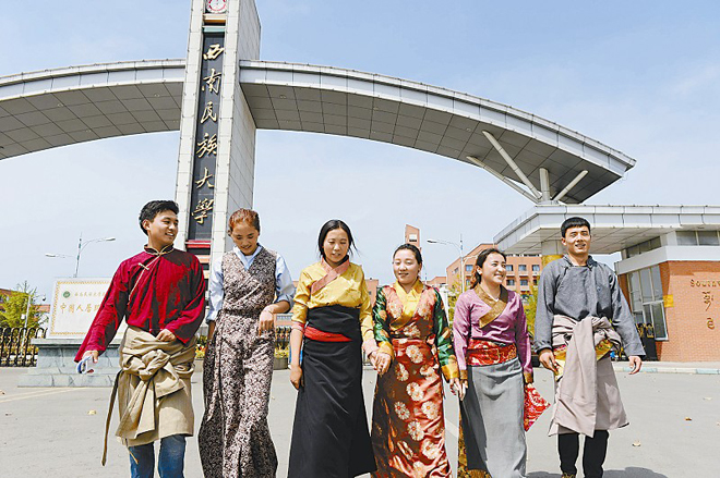 来自若尔盖县求吉乡的大一学生罗伍措告诉记者,他们乡有11名学生在西南民族大学学习,其中4人读藏汉双语行政管理专业,其余7人分别学习藏语言文学、文化产业与旅游管理等专业。
