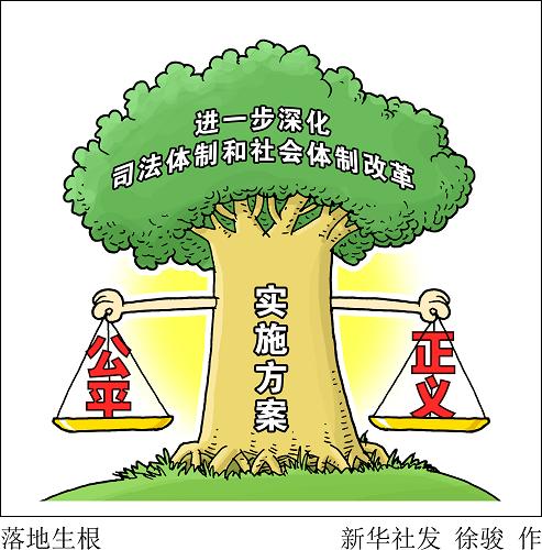 新华网北京4月10日电(记者杨维汉、邹伟、罗沙、陈菲)司法是维护社会公平正义的最后一道防线,推进司法体制改革,是深化政治体制改革的题中应有之义。领导干部干预司法记录追责,改革法院案件受理制度,实行办案质量终身负责制和错案责任倒查问责制……中办、国办日前印发的《关于贯彻落实党的十八届四中全会决定进一步深化司法体制和社会体制改革的实施方案》,破难题、固基础、谋长远。