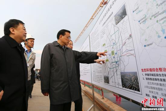 2015年4月9日,李克强考察长春南部新城综合交通枢纽施工现场,该工程涵盖地铁、地下停车库、地下商业步行系统等。总理夸赞正在作业的工人们是城市建设的功臣。中新社发 刘震 摄