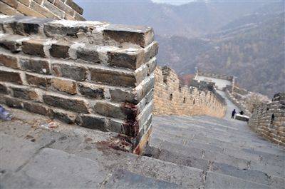 前日上午11时30分许,崔洪芳在游览北京慕田峪长城时,被一名向下疾行的加拿大女子撞倒,后脑勺撞上墙砖,当场吐血身亡。