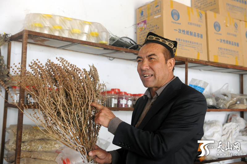 村医艾合买提·阿布都牵手农户种植了1600亩维药。