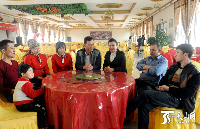 在玛纳斯县岱潍尔餐饮广场,老板阿卜力提普·穆太里甫是维吾尔族人,他招聘的员工包含维吾尔族、哈萨克族、回族、汉族。餐饮广场开业近一年,他们相处的每一天都很快乐,从没有出现谁和谁红过脸的现象。