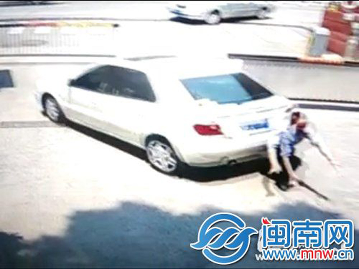 福州一女子倒车撞倒丈夫致其身亡瞬间