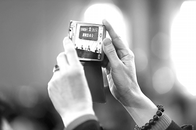 利用融媒体报道2015年两会的精彩瞬间。 本报记者 郭俊锋摄
