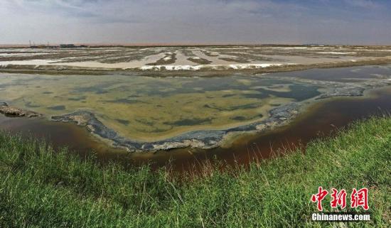 资料图:图为2014年8月29日,内蒙古阿拉善左旗额里斯镇,腾格里沙漠深处,一处产硝盐的沙漠里的绿洲,因化工污染,硝盐也遭到污染,被废弃。陈杰 摄 图片来源:CFP视觉中国