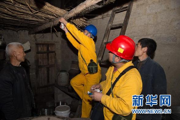 “背夹巡线队”队员来到遵义市正安县瑞溪镇一户农家中安装电灯泡(4月8日摄)。 新华社记者 刘续 摄