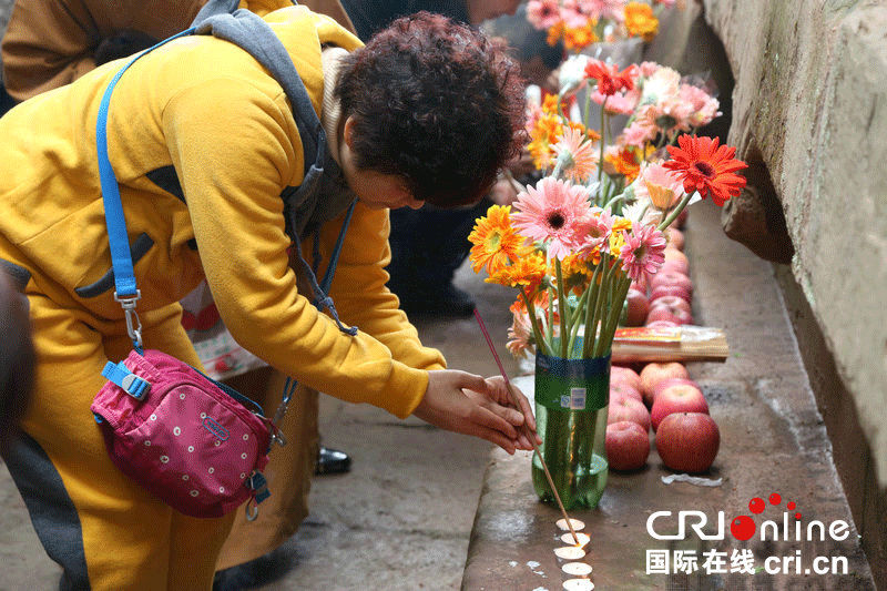 四川邛崃高河南宋石塔——释迦如来真身宝塔惊现“舍利”“真身”字样碑文被曝光后,引来了多方揣测。4月9日上午,有民众在南宋石塔自发举行祈福活动。据悉,据史料记载,该碑文于南宋年间所立,取名释迦如来真身宝塔。(何欣桐)