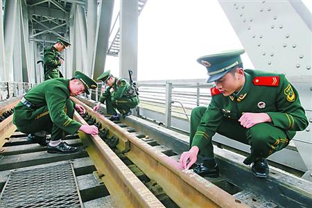 “当兵8年,和这座大桥相守了8年,这两根铁轨见证了我的青春。”3月底的一个周末,老兵黄元波特意请假外出,到日夜守护的松浦大桥上再去走走。