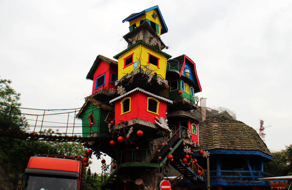 重庆现梦幻“最牛树屋” 由9间房屋组成