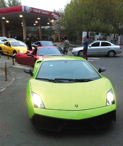 据一名网友拍摄的照片显示,当天在加油站前,兰博基尼和红色法拉利都曾出现,三名年轻男子在车旁拍照,其中两人正是事发后记者在现场看到的两名涉事司机。