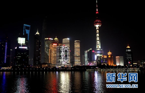 这是从上海外滩拍摄的浦东夜景(2014年1月1日摄)。 新华社记者 刘颖 摄