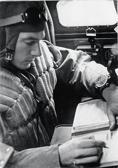 二战时期佩戴朗坤飞行表的飞行员。