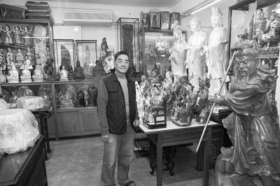 这些木雕神像凝结了曾德衡一家几代人的心血。 罗旭摄