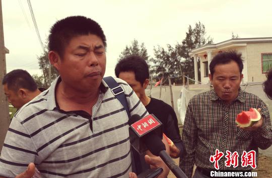 4月11日,海南万宁瓜农现场剖瓜食用以证清白。图为瓜农朱振文(左一)希望政府尽快追查真相。 王辛莉 摄