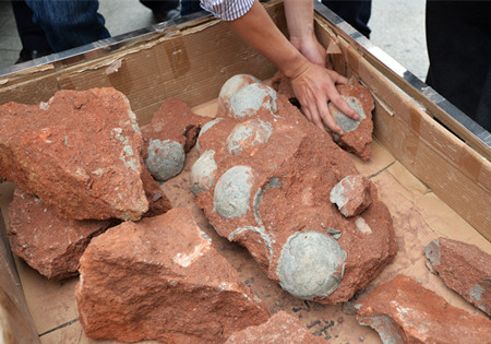广东河源闹市挖出43枚恐龙蛋化石