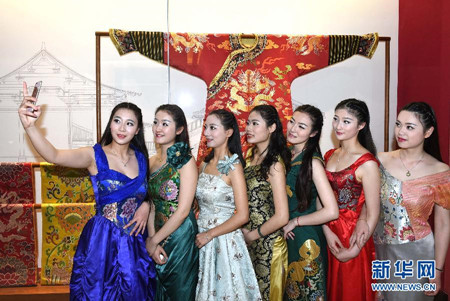众美女身着华服 助阵云锦博物馆新展馆开放