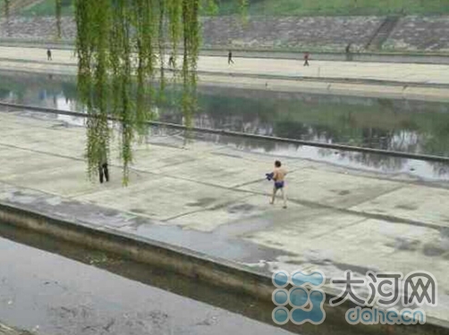 早上7点多,雨下得很小,正快步健身的他从湛河北岸往东回家,走到众福桥东侧时,听见有人喊:“救命啊!快来人吧!救救我吧!”刚开始,他以为是小孩耍着玩,但听喊了好几声,仔细一看,原来湛河南边有人掉进河里了,淹到脖子。湛河正在治理,只剩最深处有水,而最深处是梯形,水泥面,时间长了光溜溜的,人掉进去不借助外力根本上不来。