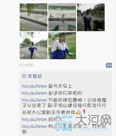 后来,这位微友在微信下感慨:万能的朋友圈啊!已经被嫂子认出来了,是建设银行平顶山分行办公室副主任黄林祥!